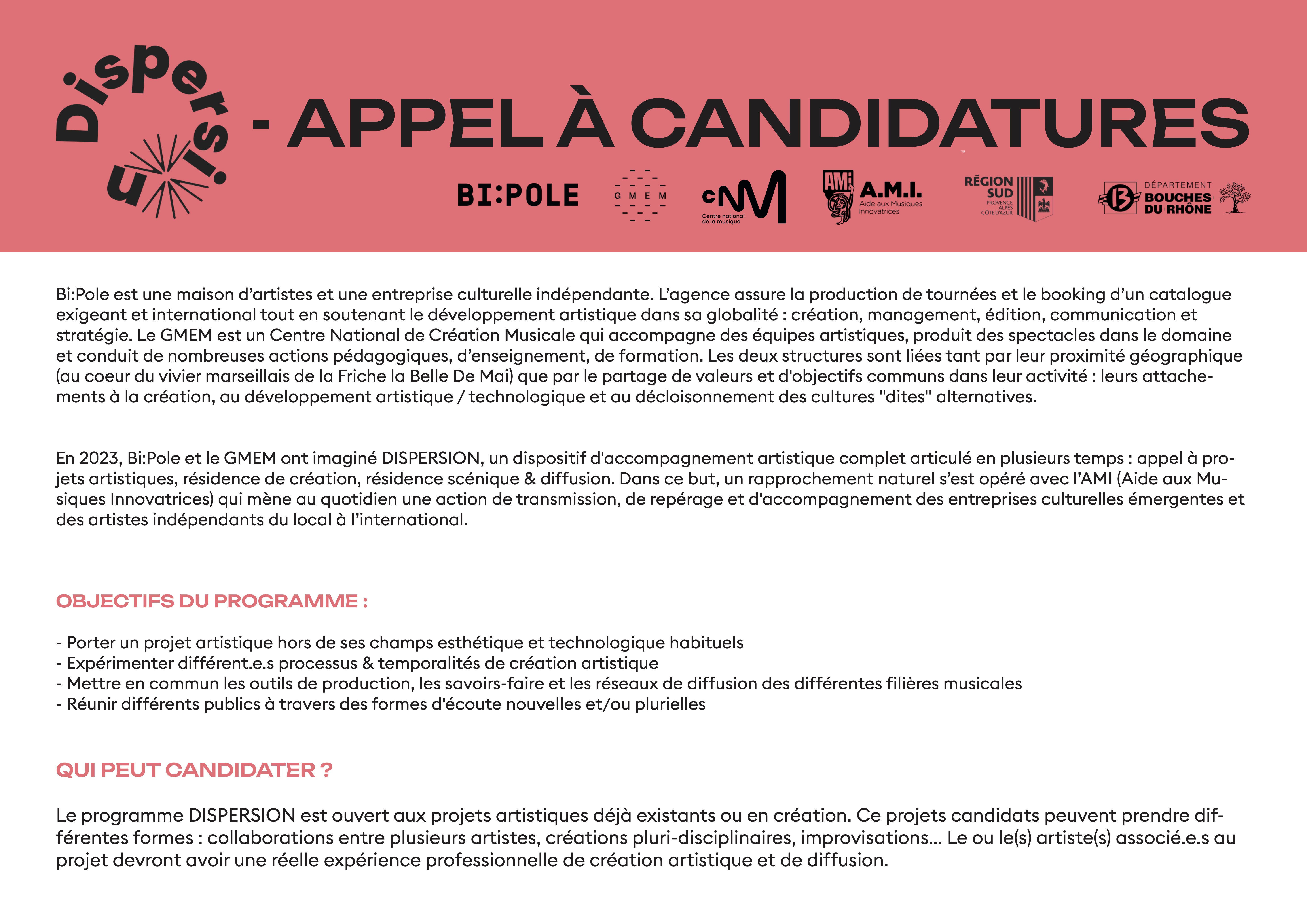 APPEL À CANDIDATURES